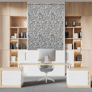 A calming botanical blind featuring flowing leaf-vine patterns in soft greys, muted blues, and warm neutral tones. This design brings a soothing, natural aesthetic to any space while maintaining a modern, airy feel. Perfect for interiors that aim for harmony, elegance, and subtle color interplay.