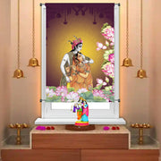 The Radha Krishna Divine Union Blind embodies the spiritual love of Lord Krishna and Radha amidst blooming lotuses and golden light. This Pichwai-inspired design radiates devotion, warmth, and serenity, making it a centerpiece for pooja rooms or sacred living spaces with a divine aura.