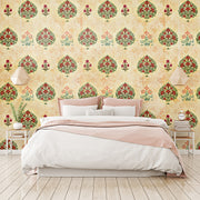 Repeat Mughal-style floral patterns in soft festive tones.; Repeat Mughal-style floral patterns in soft festive tones.